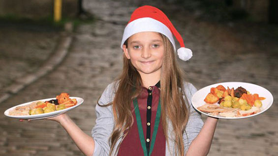 Со помош на своето семејство, добродушната Грејси од Дјусбери, Западен Јоркшир, нахранила 50 бездомници на Божиќ.