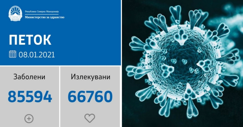 Вкупната бројка на ковид дијагностицирани во нашата земја од почетокот на епидемијата изнесува 85.594, бројката на оздравени пациенти е 66.760, на починати е 2.592, а бројот на активни случаи изнесува 16.242.