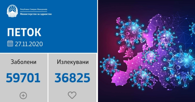 Денеска Институтот за јавно здравје регистрира 819 оздравени пациенти од: