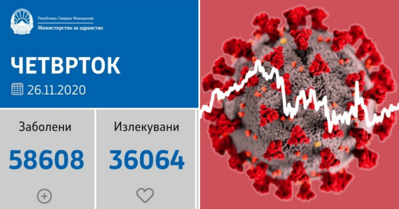 Вкупната бројка на ковид дијагностицирани во нашата земја од почетокот на епидемијата изнесува 58.608, бројката на оздравени пациенти е 36.064, на починати е 1.630, а бројот на активни случаи изнесува 20.914. Од вчера се евидентираат три контролни теста, а според досега завршените епидемиолошки анализи, во моментов, дистрибуцијата по градови е следна: