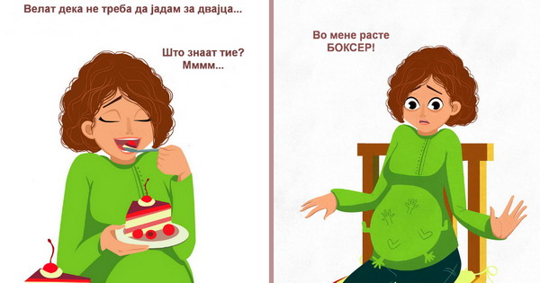 Силните клоцања на бебето, желбата на непознати лица да го допрат трудничкото стомаче, неможноста да се наведнат за да земат испуштен предмет од подот, честите посети во тоалетот... Во илустрациите на Жана Буланкова ќе се пронајде секоја бремена жена, но и секоја мајка која веќе ги оставила трудничките денови зад себе.