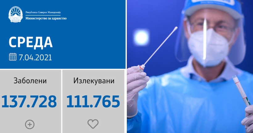 Вкупната бројка на КОВИД-дијагностицирани лица во нашата земја од почетокот на епидемијата изнесува 137.728, бројката на оздравени пациенти е 111.765, на починати е 4.072, а бројот на активни случаи изнесува 21.891.