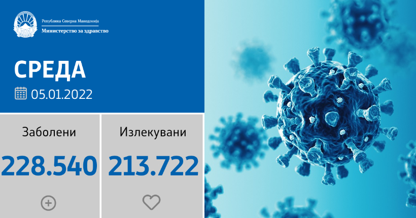 Вкупната бројка на КОВИД-дијагностицирани лица во нашата земја од почетокот на епидемијата изнесува 228.540, бројот на оздравени пациенти е 213.722, на починати е 8.000, а бројот на активни случаи изнесува 6.818.