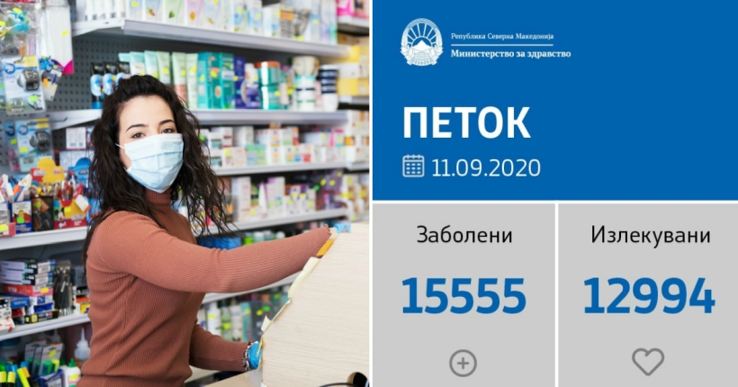 Вкупната бројка на ковид дијагностицирани во нашата земја од почетокот на епидемијата изнесува 15.555, бројката на оздравени пациенти е 12.994, на починати е 642, а во моментов бројот на активни случаи во земјата изнесува 1.919.