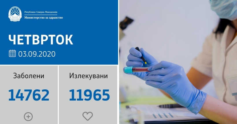 Вкупната бројка на ковид дијагностицирани во нашата земја од почетокот на епидемијата изнесува 14.762, бројката на оздравени пациенти е 11.965, на починати е 606, а во моментов бројот на активни случаи во земјата изнесува 2.191.
