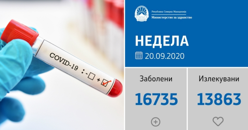 Вкупната бројка на ковид дијагностицирани во нашата земја од почетокот на епидемијата изнесува 16.735, бројката на оздравени пациенти е 13.863, на починати е 693, а во моментов бројот на активни случаи во земјата изнесува 2.179.
