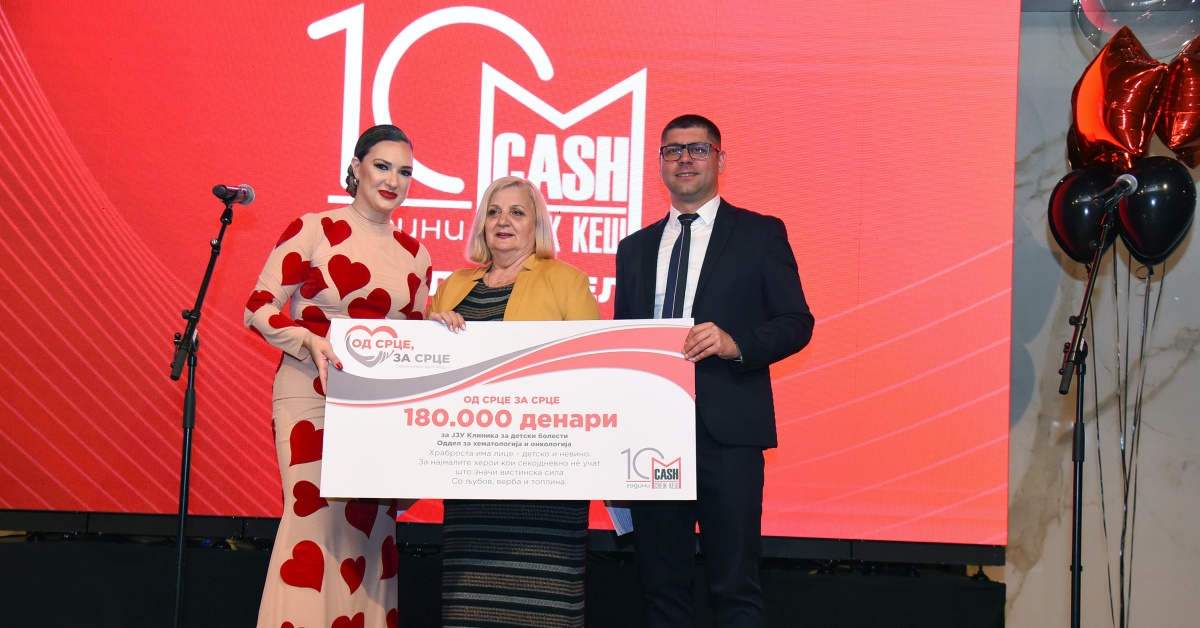 Со почеток на оштествено одговорна иницијатива „Од срце, за срце“ М Кеш одбележува 10 години од своето постоење на македонскиот пазар. Имено, денеска менаџментот на компанијата донираше 180.000 денари на ЈЗУ Клиника за детски болести – оддел за хематологија и онкологија.