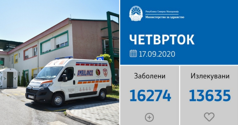 Вкупната бројка на ковид дијагностицирани во нашата земја од почетокот на епидемијата изнесува 16.274, бројката на оздравени пациенти е 13.635, на починати е 675, а во моментов бројот на активни случаи во земјата изнесува 1.964.
