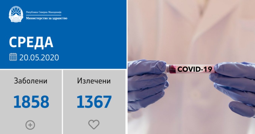 Вкупната бројка на дијагностицирани со КОВИД-19 во нашата земја од почетокот на епидемијата изнесува 1.858, бројката на оздравени пациенти е 1.367, на починати е 110, а во моментов бројот на активни случаи во земјата изнесува 381.