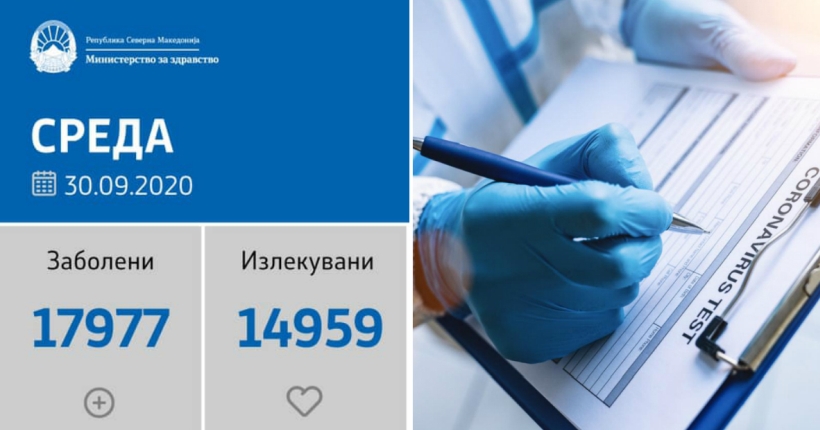 Вкупната бројка на ковид дијагностицирани во нашата земја од почетокот на епидемијата изнесува 17.977, бројката на оздравени пациенти е 14.959, на починати е 739, а во моментов бројот на активни случаи во земјата изнесува 2.279.