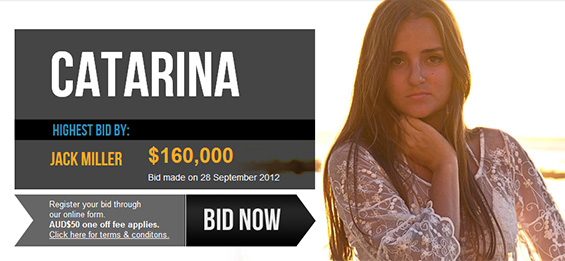 Победникот во аукцијата ќе може да помине еден час со Катарина во авион кој ќе лета од Австралија кон САД, со цел да бидат „заобиколени“ законите за проституција. Бакнувањето е забрането, а задолжителна е употребата на кондом.