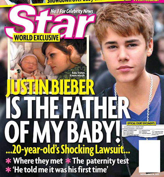 Според списанието Star, кое ексклузивно ја поседува тужбата, Џастин ја забременил девојката Мараја Јетер на 25 октомври минатата година, кога имале сексуални односи зад сцената по еден од концертите на тинејџерската ѕвезда.