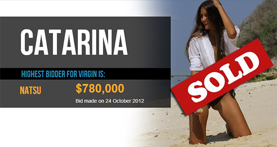 Минатиот месец Катарина Миглиорини ја шокира јавноста кога објави дека си ја продава девственоста на онлајн аукција. Вчера заврши наддавањето за првиот сексуален однос на 20-годишната Бразилка. Највисоката понуда била дадена од Јапонецот Натсу, кој понудил 780.000 долари за да ѝ биде прв сексуален партнер на Катарина.