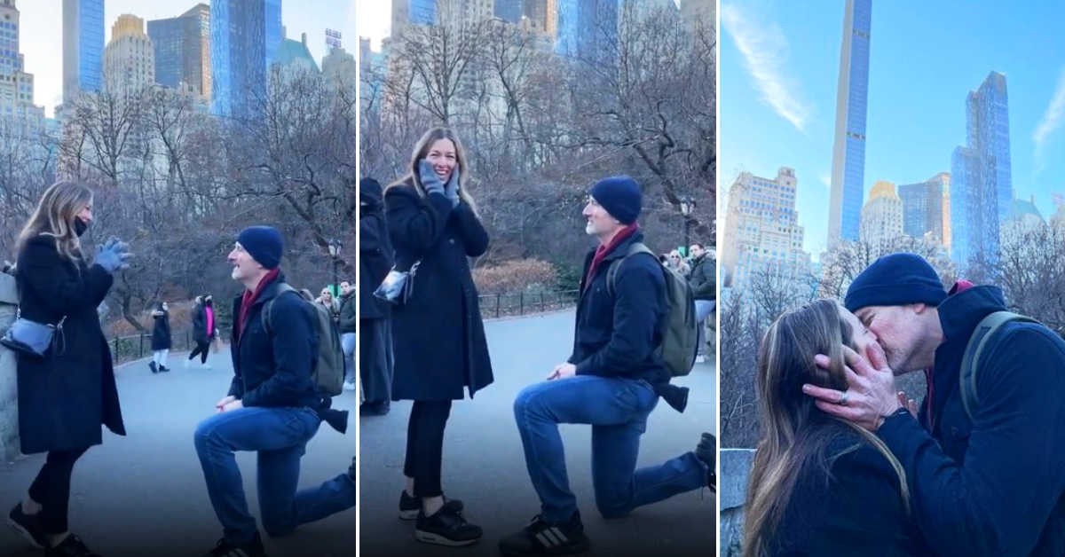 „Не доби романтичен предлог за брак првиот пат, па помислив да се обидам повторно, патувајќи до Централ Парк за да те изненадам. Изненадена си?“