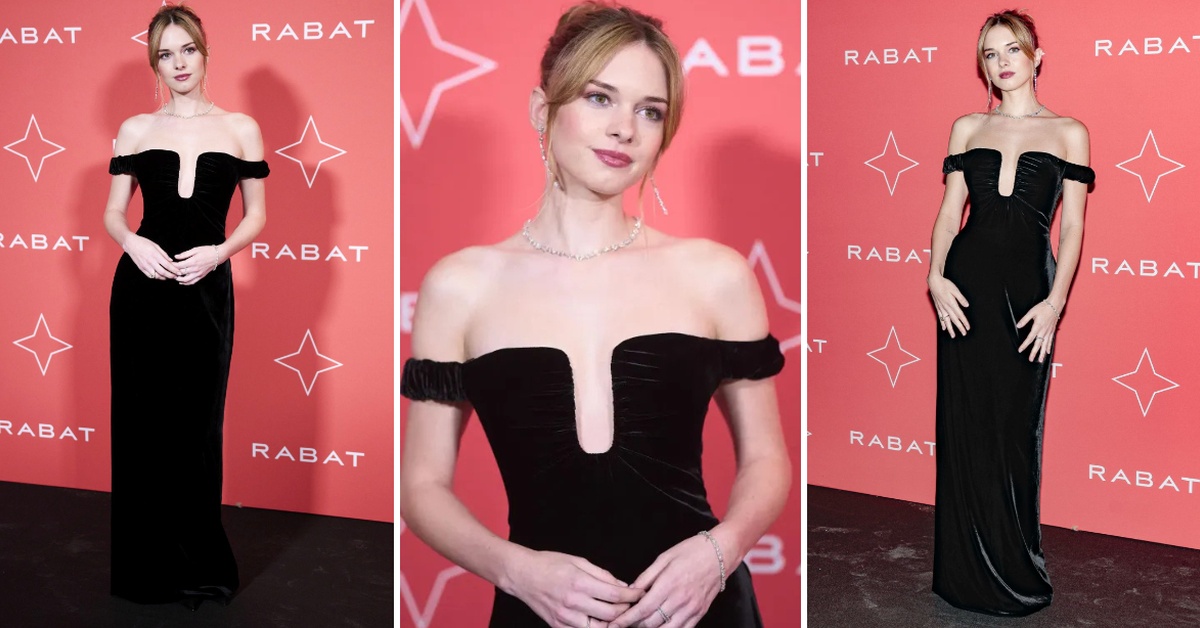Убавата ќерка на Антонио Бандерас и Мелани Грифит носеше црн кадифен фустан со паднати прерамки и длабоко деколте од Ролан Муре. Својот изглед, таа до надополни со елегантна фризура и нежен накит.