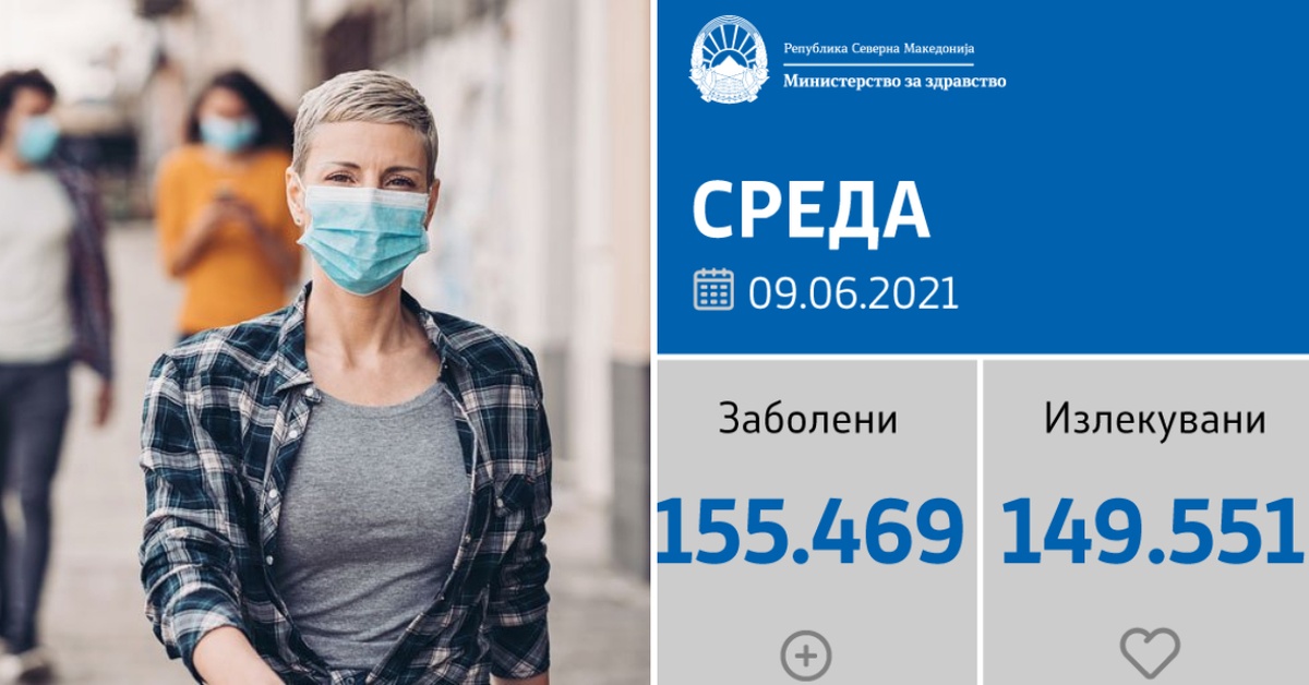 Вкупната бројка на КОВИД-дијагностицирани лица во нашата земја од почетокот на епидемијата изнесува 155.469, бројката на оздравени пациенти е 149.551, на починати е 5.467, а бројот на активни случаи изнесува 451.