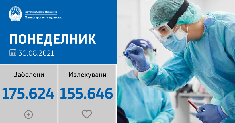 Вкупната бројка на КОВИД-дијагностицирани лица во нашата земја од почетокот на епидемијата изнесува 175.624, бројката на оздравени пациенти е 155.646, на починати е 5.901, а бројот на активни случаи изнесува 14.077.