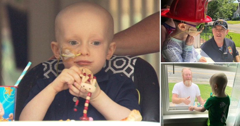 3-годишно момче кое се бори со рак и мора да е во изолација дома добива забавни посети на прозорец од добродушни сограѓани