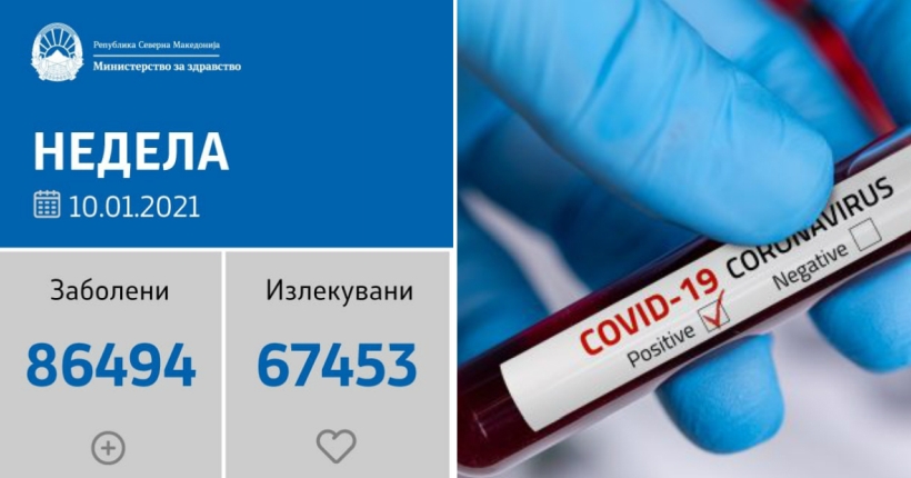 Вкупната бројка на ковид дијагностицирани во нашата земја од почетокот на епидемијата изнесува 86.494, бројката на оздравени пациенти е 67.453, на починати е 2.622, а бројот на активни случаи изнесува 16.419.