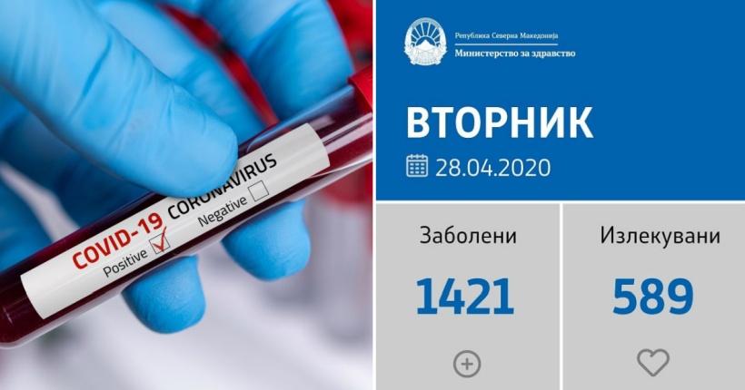 Со тоа, вкупната бројка на заболени од КОВИД-19 во Македонија се искачи на 1.421.