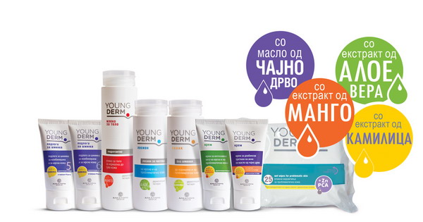 Импресивни сами по себе, но незаменливи кога делуваат како дел од цела колекција за нега! А за добивката да биде уште поголема, не мора да патувате ни до Австралија, ни до Индија и Африка, нити пак да се искачувате на планина во потрага по камилица, бидејќи сите овие состојки се содржат во Yоung Derm колекцијата за нега на кожа. Како производ кој доаѓа од Алкалоид, компанија со долгогодишна традиција, Young Derm е клинички испитана колекција која можете да ја најдете во сите аптеки и добро снабдени супермаркети.