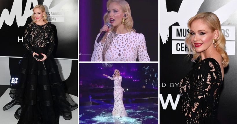 Во текот на свеченоста, музичката ѕвезда се поресоблече во бела креација и на сцената ја изведе својата нова песна „Moje proljece“.