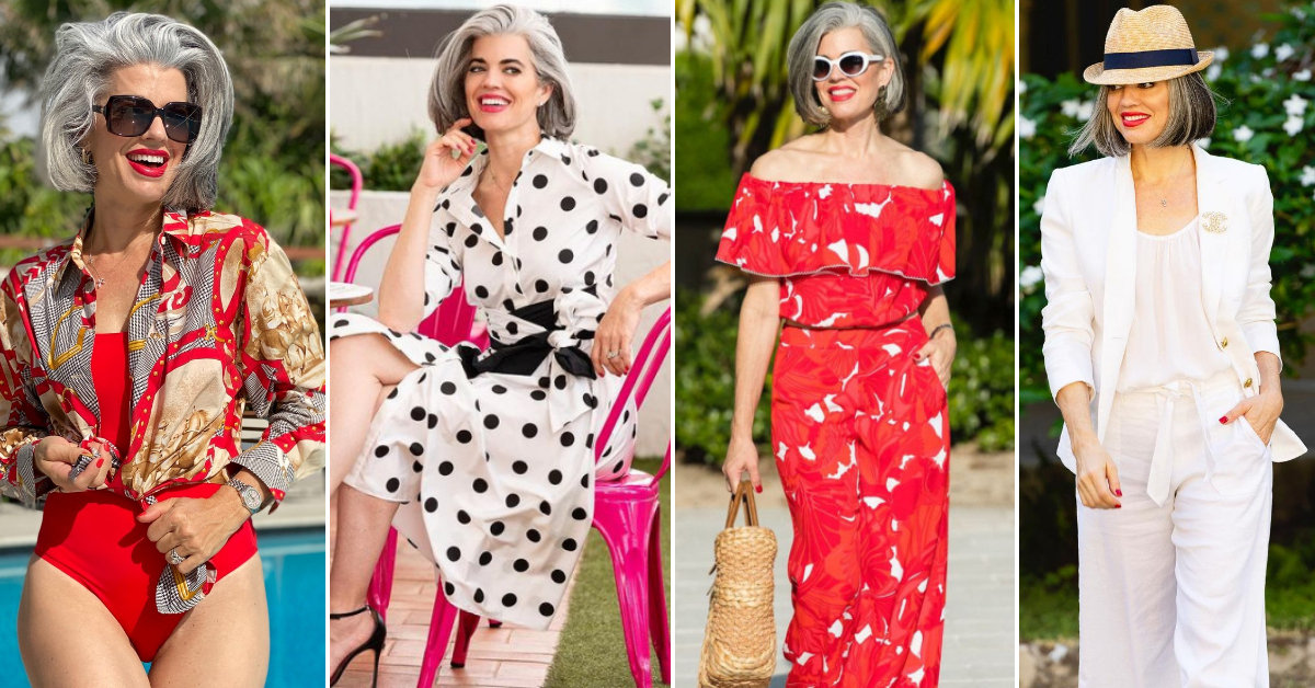 Блогерка со седа коса нуди совети за убавина и софистицирани модни комбинации за жени над 40 години, мамејќи воздишки со изгледот.