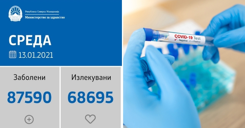 Вкупната бројка на ковид дијагностицирани во нашата земја од почетокот на епидемијата изнесува 87.590, бројката на оздравени пациенти е 68.695, на починати е 2.657, а бројот на активни случаи изнесува 16.238.