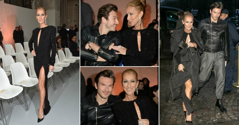 50-годишната Селин Дион во фустан со висок шлиц на ревија покрај танчарот со кого се неразделни