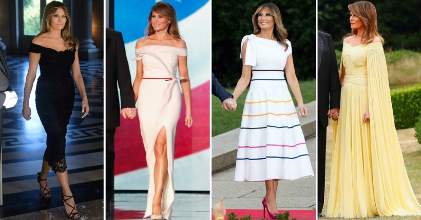 Диор, Гучи, Ралф Лорен, Ролан Муре, Каролина Ерера, Кристијан Лобутин и Маноло Бланик се дел од брендовите кои Меланија ги преферира за свеченостите, а за стилот, најверен консултант ѝ е Ерв Пјер, кој има дизајнирано многу креации специјално за неа.