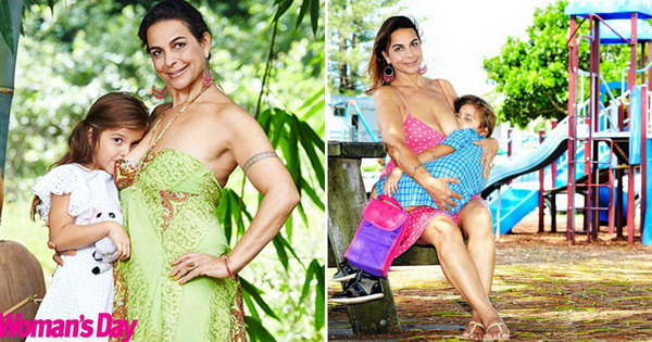 52-годишната Австралијка беше фотографирана како ја дои ќерката си во парк за најновото издание на списанието „Woman’s Day“. На фотографијата, девојчето носи училишна униформа.