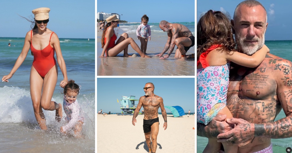 55-годишниот италијански милионер и 28-годишната Венецуелка се релаксираа и се забавуваа со слатката Блу Џерусалема на плажа.