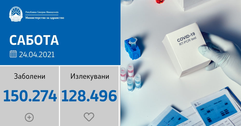 Вкупната бројка на Ковид-дијагностицирани лица во нашата земја од почетокот на епидемијата изнесува 150.274, бројката на оздравени пациенти е 128.496, на починати е 4.650, а бројот на активни случаи изнесува 17.128.