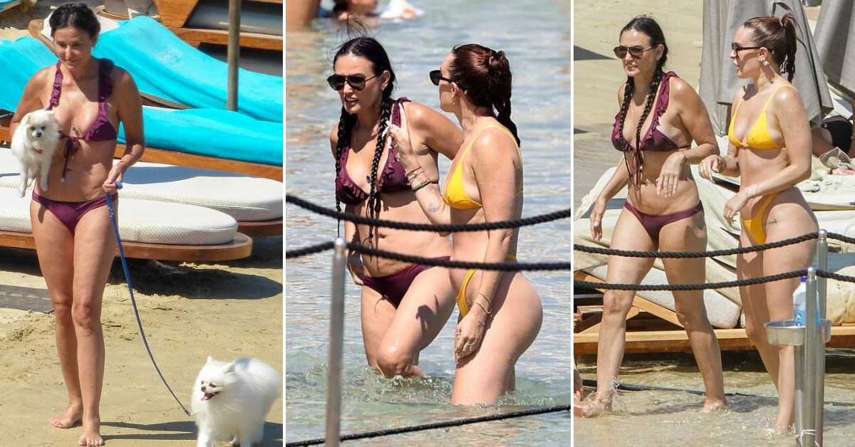 58-годишната актерка ја покажа одржаната фигура во бикини во бургундец нијанса додека 32-годишната Румер носеше жолт костим за капење. Нивна дестинација беше островот Миконос.