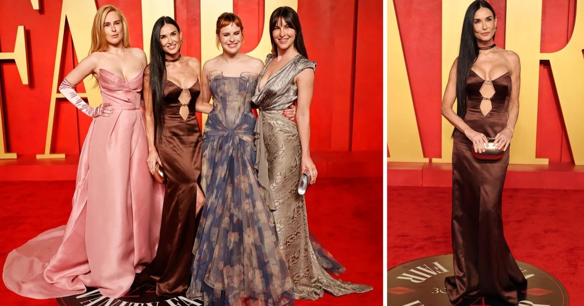 Деми Мур имаше прекрасна придружба на забавата на Vanity Fair, која секоја година се организира по повод Оскар. 61-годишната актерка позираше со трите ќерки на црвениот тепих.