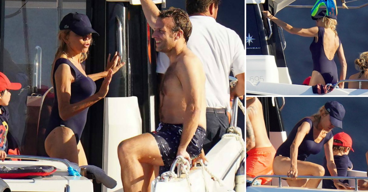 67-годишната Брижит Макрон во едноделен костим за капење со Емануел ужива на јахта во Франција