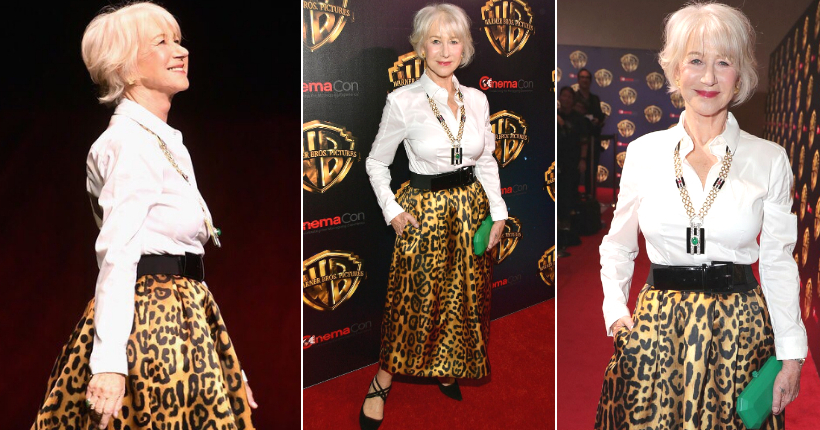 За време на конференцијата CinemaCon, 73-годишната актерка мамеше комплименти во модерен стајлинг кој вклучуваше бела кошула и леопардско здолниште од Адам Липс. Својот изглед, таа го надополни со впечатлив накит од Дејвид Веб и чантичка од Тајлер Елис.