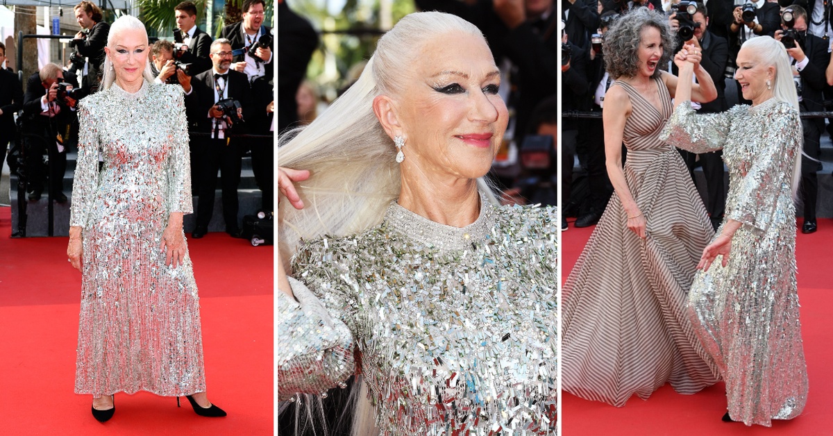 Хелен Мирен со младешки изглед одушеви на црвениот тепих во Кан. 76-годишната актерка се појави на премиерата на „Mother And Son“ (Un petit frère) во сребрена креација од Долче и Габана.