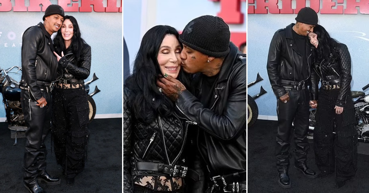 78-годишната Шер со 40 години помладиот дечко со моторџиски кожени јакни на премиерата на „The Bikeriders“