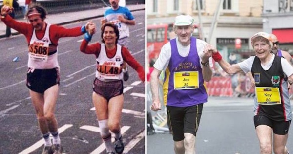 Во далечната 1986 година, Џо и Кеј О’Реган го завршиле својот прв маратон заедно, поминувајќи ја целта држејќи се за раце, а сега го повторија тоа во Лондон трчајќи на патека од 800 метри, со што привлекоа големо внимание.
