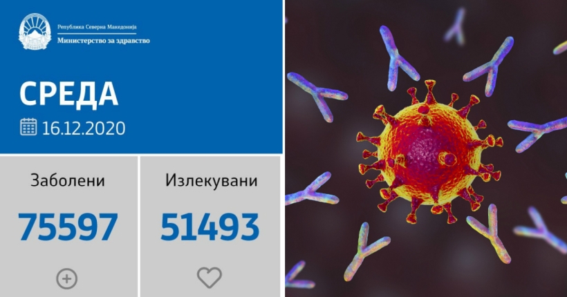 Вкупната бројка на ковид дијагностицирани во нашата земја од почетокот на епидемијата изнесува 75.597, бројката на оздравени пациенти е 51.493, на починати е 2.194, а бројот на активни случаи изнесува 21.910.