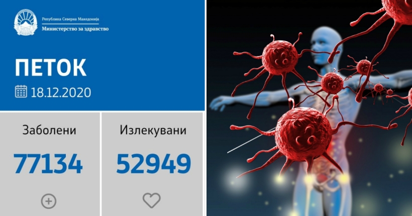 Вкупната бројка на ковид дијагностицирани во нашата земја од почетокот на епидемијата изнесува 77.134, бројката на оздравени пациенти е 52.949, на починати е 2.254, а бројот на активни случаи изнесува 21.931.