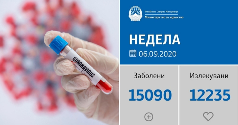 Вкупната бројка на ковид дијагностицирани во нашата земја од почетокот на епидемијата изнесува 15.090, бројката на оздравени пациенти е 12.235, на починати е 617, а во моментов бројот на активни случаи во земјата изнесува 2.238.