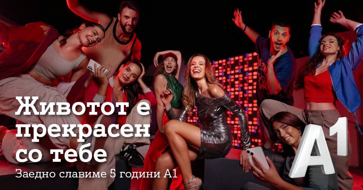 А1 Македонија, телекомуникациска компанија членка на ГрупацијатаА1, ја прославува својата петта година од претставувањето на брендот на македонскиот пазар. Компанијата е горда на своите достигнувања во минатите пет години исполнети со иновативни дигитални решенија, богато конвергентно портфолио, најатрактивни понуди и воведување нови технологии и содржини со кои ја овозможува дигитализацијата на целото општество.
