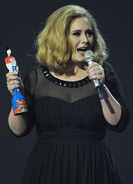„Благодарам многу. Ништо не ме прави погорда од тоа што се вратив дома со шест Греми награди, а потоа дојдов на Брит наградите и ја освоив наградата за албум на годината. Многу сум горда што сум Британка и што го веам британското знаме и што сум во иста просторија со сите вас“ – изјави среќната Адел. Но, во тој момент водителот ѝ се обрати со извинување затоа што мораше да го прекине нејзиниот говор.