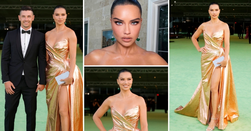 На свеченоста во Лос Анџелес, бразилската убавица се појави во златен фустан од Nicolas Jebran.