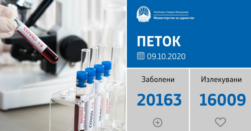 Вкупната бројка на ковид дијагностицирани во нашата земја од почетокот на епидемијата изнесува 20.163, бројката на оздравени пациенти е 16.009, на починати е 781, а во моментов бројот на активни случаи во земјата изнесува 3.373.