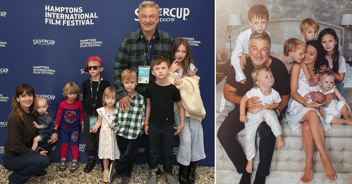 65-годишниот актер и 39-годишната јога инструкторка ги поведоа со себе нивните седум деца. Големото семејство заедно позираше пред насобраните фоторепортери на приемот.