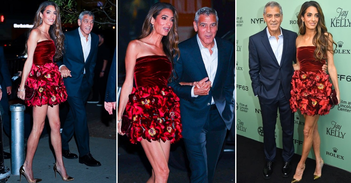 Амал ги покажа долгите нозе во кратко црвено фустанче покрај Џорџ Клуни на премиера во Њујорк