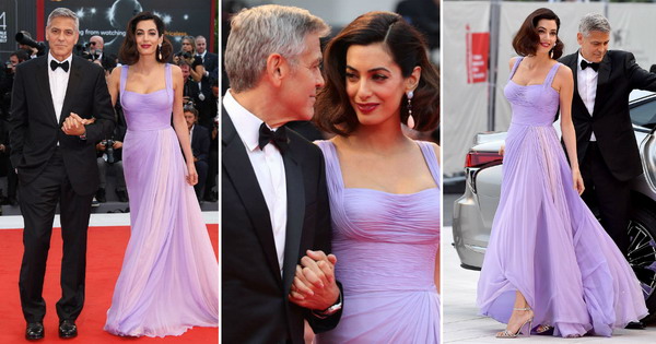 39-годишната адвокатка носеше нежен фустан од високата мода на Версаче додека го поддржуваше 56-годишниот сопруг на премиерата на неговиот најнов филм „Suburbicon“.